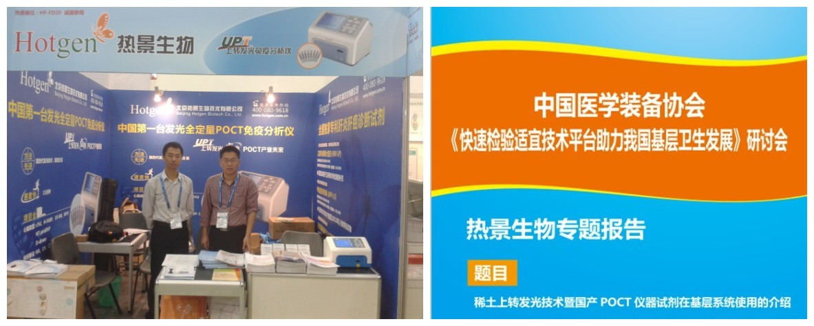 同期,熱景公司參加了中國(guó)醫(yī)學(xué)裝備協(xié)會(huì)—《快速檢驗(yàn)適宜技術(shù)平臺(tái)助力我國(guó)基層衛(wèi)生發(fā)展》研討會(huì),總經(jīng)理林長(zhǎng)青做了主題為:稀土上轉(zhuǎn)發(fā)光技術(shù)暨國(guó)產(chǎn)POCT儀器試劑在基層系統(tǒng)使用的介紹。上轉(zhuǎn)發(fā)光技術(shù)的優(yōu)勢(shì)引起業(yè)內(nèi)專(zhuān)家人士的高度認(rèn)同。