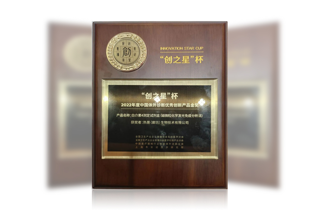 在5月27日“創(chuàng)之聲”第八屆中國(guó)實(shí)驗(yàn)醫(yī)學(xué)大會(huì)現(xiàn)場(chǎng),熱景生物旗下熱景(廊坊)生物技術(shù)有限公司生產(chǎn)的專有特色細(xì)胞因子系列產(chǎn)品,榮獲2022年度“創(chuàng)之星”杯中國(guó)體外診斷優(yōu)秀創(chuàng)新產(chǎn)品金獎(jiǎng)。