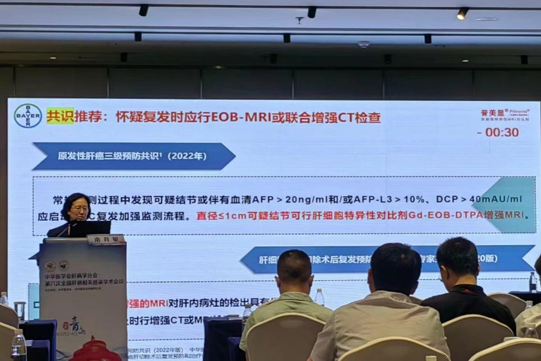 河北醫(yī)科大學(xué)第三醫(yī)院南月敏教授作“積極治療,從新出發(fā)-從新指南看慢乙肝初治患者的優(yōu)化治療策略”學(xué)術(shù)報(bào)告,在講到共識(shí)推薦:懷疑復(fù)發(fā)時(shí)應(yīng)行EOB-MRI或聯(lián)合增強(qiáng)CT檢查時(shí),指出常規(guī)檢測過程中發(fā)現(xiàn)可疑結(jié)節(jié)或伴有血清AFP>20ng/ml和AFP-L3>10%、DCP>40mAU/ml,應(yīng)啟動(dòng)HCC復(fù)發(fā)加強(qiáng)監(jiān)測流程。