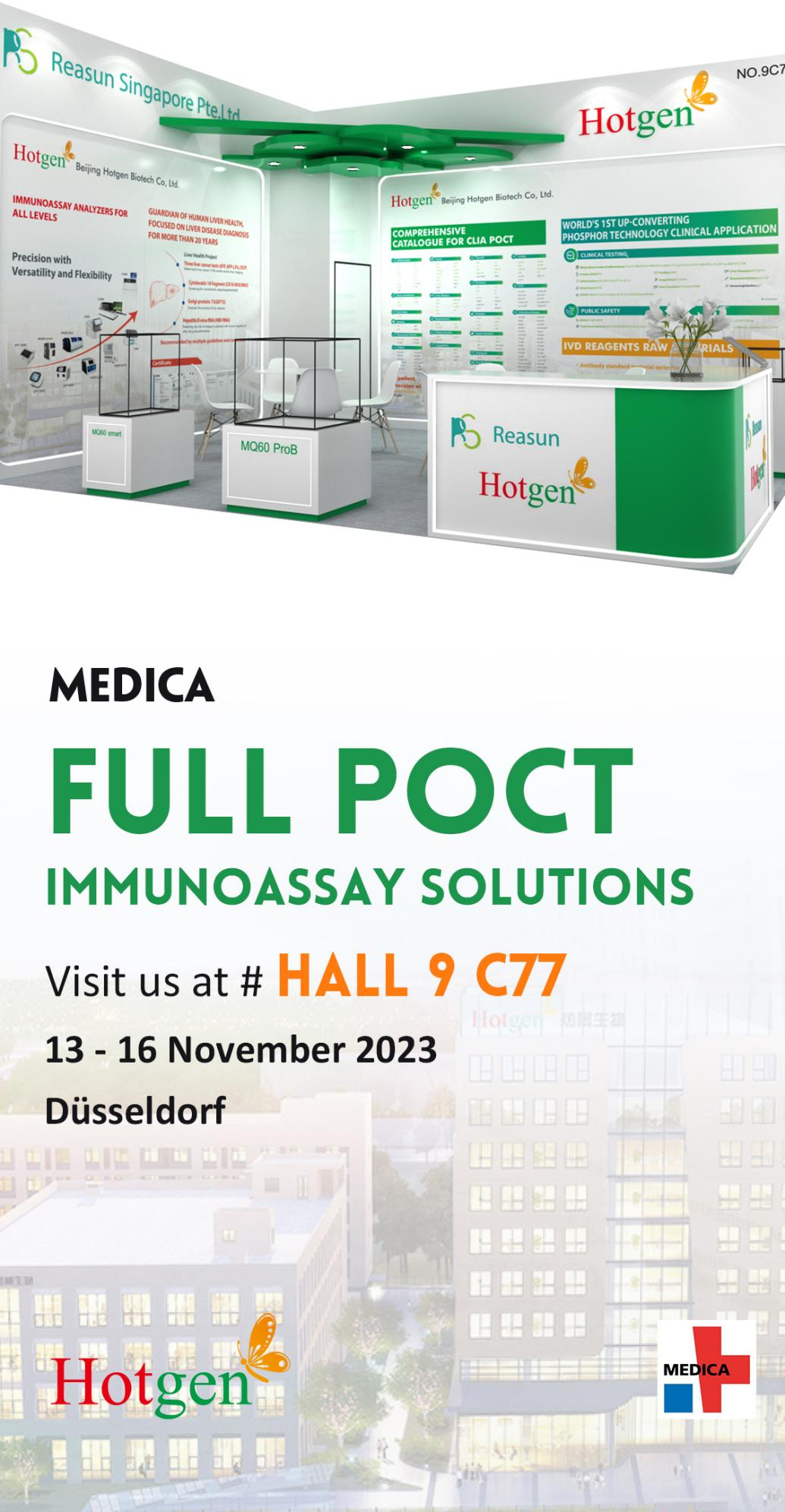 備受矚目的第55屆德國杜塞爾多夫國際醫(yī)院及醫(yī)療設(shè)備展覽會(huì)(MEDICA 2023)將于2023年11月13日-16日在德國杜塞爾多夫展覽中心舉辦,熱景生物展位號(hào)Hall9 C77。作為一家以“發(fā)展生物科技,造福人類健康”為使命的生物高新技術(shù)企業(yè),熱景生物一直致力于為世界各地的醫(yī)療機(jī)構(gòu)提供精準(zhǔn)、便捷的臨床診斷和體檢解決方案。本次展會(huì)將展示我們近年來在IVD領(lǐng)域研發(fā)的最新成果。