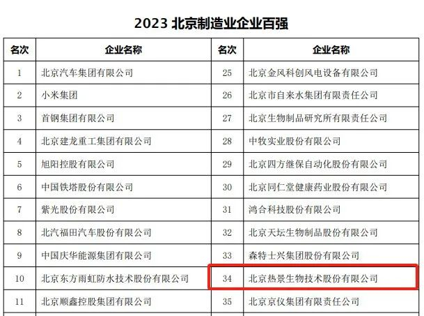 近日,北京企業(yè)聯(lián)合會(huì)、北京市企業(yè)家協(xié)會(huì)公布了2023北京企業(yè)百?gòu)?qiáng)名單,熱景生物榮登熱景生物榮登2023北京高精尖企業(yè)百?gòu)?qiáng)、2023北京制造業(yè)企業(yè)百?gòu)?qiáng)、2023北京服務(wù)業(yè)企業(yè)百?gòu)?qiáng)三大榜單!三大榜單!