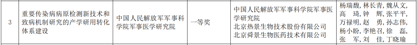 近日,北京市人民政府發(fā)布《北京市人民政府關于2023年度北京市科學技術獎勵的決定》,中國人民解放軍軍事科學院軍事醫(yī)學研究院、北京熱景生物技術股份有限公司、北京舜景生物醫(yī)藥技術有限公司聯(lián)合申報的“重要傳染病病原檢測新技術和致病機制研究的產學研用轉化體系建設”項目,榮獲“2023年北京市科學技術進步獎一等獎”,這是繼公司獲得國家技術發(fā)明二等獎、中華醫(yī)學科技獎二等獎、民營科技發(fā)展貢獻獎科技創(chuàng)新一等獎、上海市科學技術二等獎之后的又一重磅獎項,充分體現(xiàn)了熱景生物在高水平科技自立自強、打造科技創(chuàng)新核心競爭力道路上的不懈追求和綜合實力。