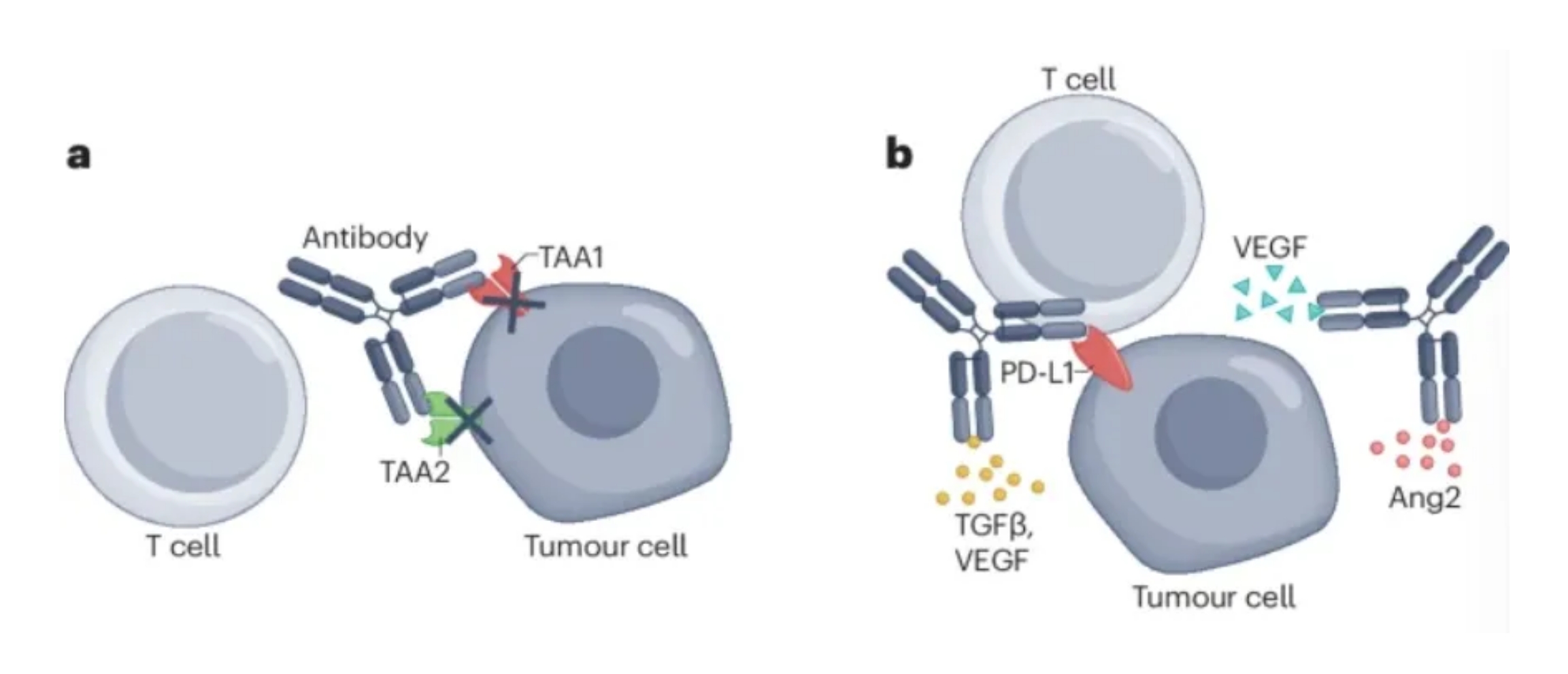 在這篇綜述中,德國(guó)維爾茨堡大學(xué)醫(yī)院Maria-Elisabeth Goebeler等人討論了雙特異性抗體在癌癥患者中的作用,包括歷史和發(fā)展,以及創(chuàng)新的靶向策略、臨床應(yīng)用和不良事件。此外,作者還討論了新的替代雙特異性抗體構(gòu)建體,例如那些靶向腫瘤細(xì)胞或位于腫瘤微環(huán)境中的細(xì)胞表達(dá)的兩種抗原的構(gòu)建體。最后,作者還介紹了這一快速發(fā)展領(lǐng)域的未來(lái)研究方向,包括創(chuàng)新的抗體工程策略,這有望使藥物遞送更有效、克服耐藥性,從而優(yōu)化臨床結(jié)果。相關(guān)工作以“Bispecific and multispecific antibodies in oncology: opportunities and challenges”為題發(fā)表在Nature Reviews Clinical Oncology。