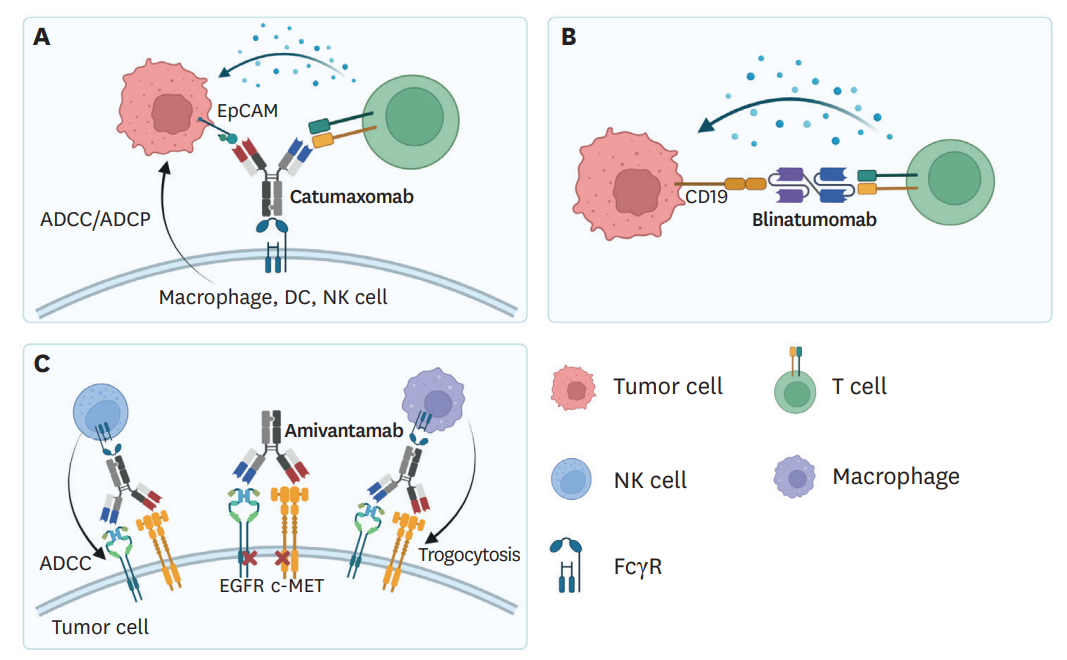 癌癥免疫療法中使用的大多數(shù)bsAbs通過T細(xì)胞驅(qū)動的天然或內(nèi)源性免疫發(fā)揮作用,包括免疫檢查點抑制(CPIs)效應(yīng)細(xì)胞接合器(包括TCE和ICEs)以及共刺激性bsAb。
