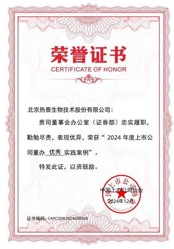 近日,中國上市公司協(xié)會(huì)開展的“上市公司董辦最佳實(shí)踐案例征集活動(dòng)”結(jié)果揭曉,熱景生物榮獲“2024年度上市公司董辦優(yōu)秀實(shí)踐案例”,這也是公司連續(xù)第三年獲此榮譽(yù)。 “上市公司董辦最佳實(shí)踐”案例征集活動(dòng)是中國上市公司協(xié)會(huì)對(duì)上市公司董事會(huì)辦公室履職情況進(jìn)行評(píng)價(jià),評(píng)價(jià)體系涵蓋了上市公司董辦工作所涉及的信息披露管理事務(wù)、公司治理機(jī)制建設(shè)、投資者關(guān)系管理事務(wù)等指標(biāo),于今年10月啟動(dòng),經(jīng)初審、專家委員會(huì)評(píng)審、誠信核查等環(huán)節(jié),最終評(píng)出最佳實(shí)踐案例280家、優(yōu)秀實(shí)踐案例300家。其中入選“董辦優(yōu)秀實(shí)踐案例”的300家上市公司中,滬市上市公司150家,占50%;深市上市公司146家,占48.7%;北交所上市公司4家。
